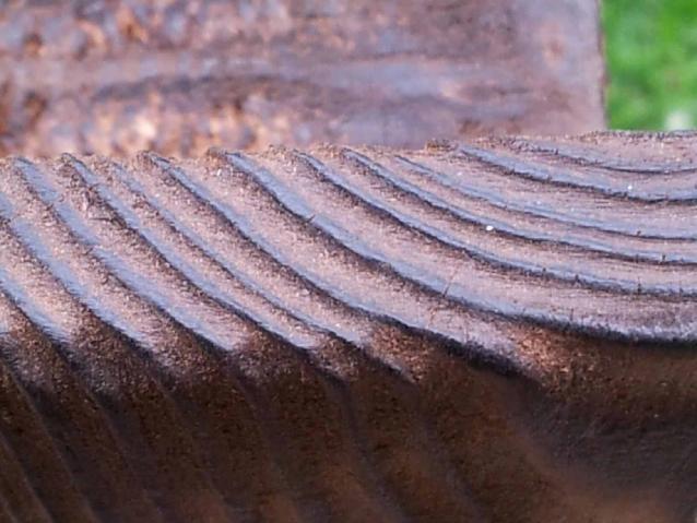Anschließend wird die verbrannte Schicht mittels Bürste von Hand befreit und anschließend die durch die Hitze verdichteten Strukturen herausgearbeitet.