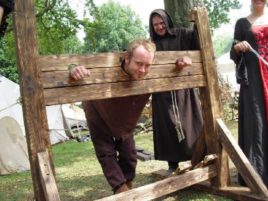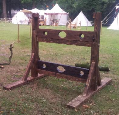 Da viele Frauen zu zierlich für den Pranger sind hat der Bruder mehrere kleinere Pranger/Schandgeigen mit verschieden großen Öffnungen hinzubekommen um auch wirklich jedem gerecht zu werden!